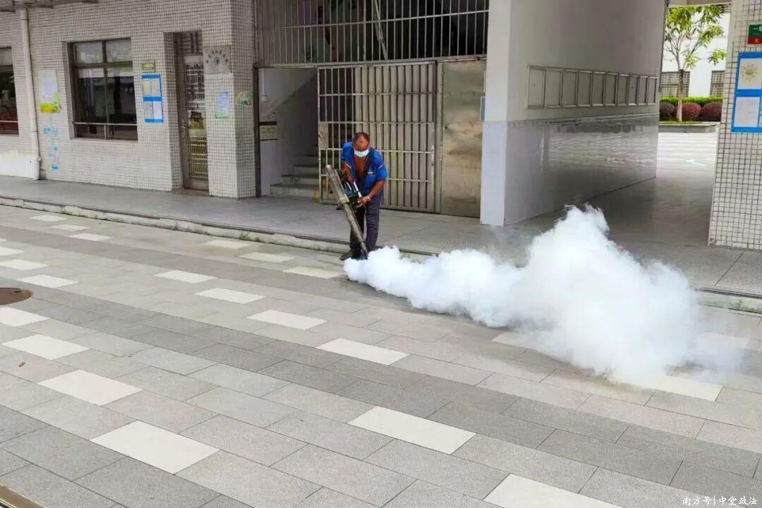 结合全市基孔肯雅热防控工作部署,中堂城管分局联动专业消杀团队,对校园周边绿化带、下水道口、垃圾桶周边等蚊虫孳生地进行“精准打击”;同时联合教育部门、各村(社区),对辖区39所中小学、幼儿园及周边区域开展全覆盖消杀作业,通过科学喷洒药剂、清理孳生环境等方式,有效降低虫媒疾病传播风险,为师生健康加筑“隐形防线”。